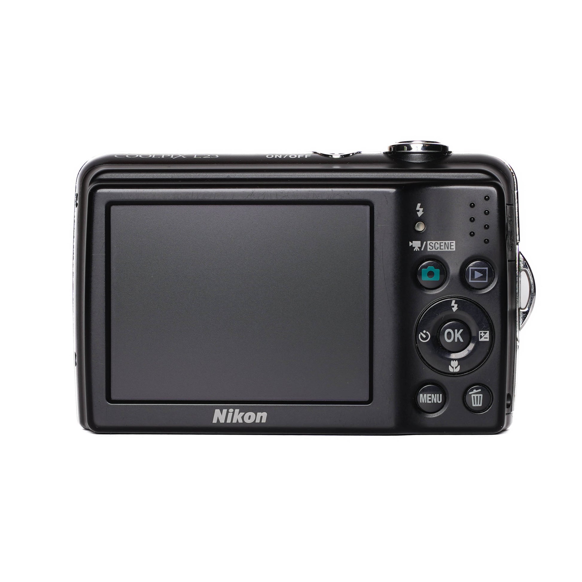 The Nikon CoolPix L23 is a dependable 10-megapixel digital camera with a 5x optical zoom lens and Easy Auto Mode for effortless shooting. With features like Smart Portrait System and Motion Detection, it ensures sharp and vibrant results every time. Powered by easy-to-find AA batteries, the L23 is great for travel, casual photography, and beginners seeking Nikon’s trusted image quality in a compact design.