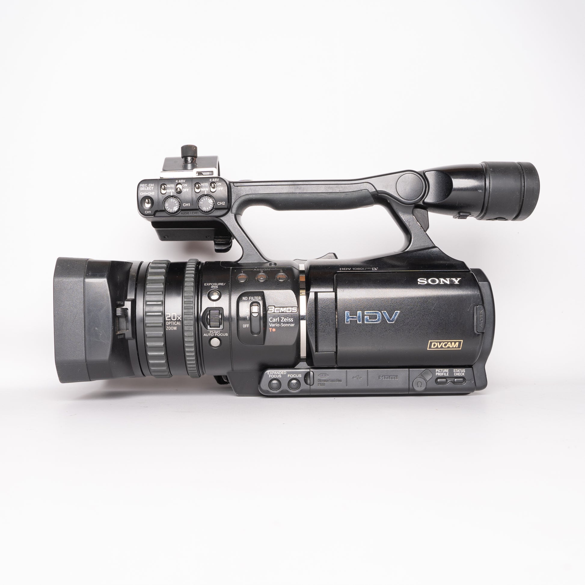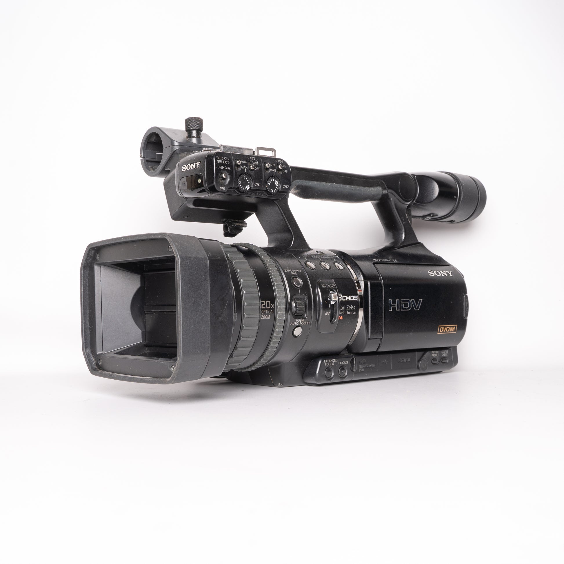 Its Carl Zeiss Vario-Sonnar T* lens with 20x optical zoom ensures superb optical clarity, while Super SteadyShot stabilization keeps footage smooth and steady. The HVR-V1E also supports HDV and DV recording, offering flexibility for both high-definition and standard-definition workflows. With professional XLR audio inputs, manual controls, and ergonomic design, it’s a durable and powerful tool for modern creators seeking vintage Sony craftsmanship.